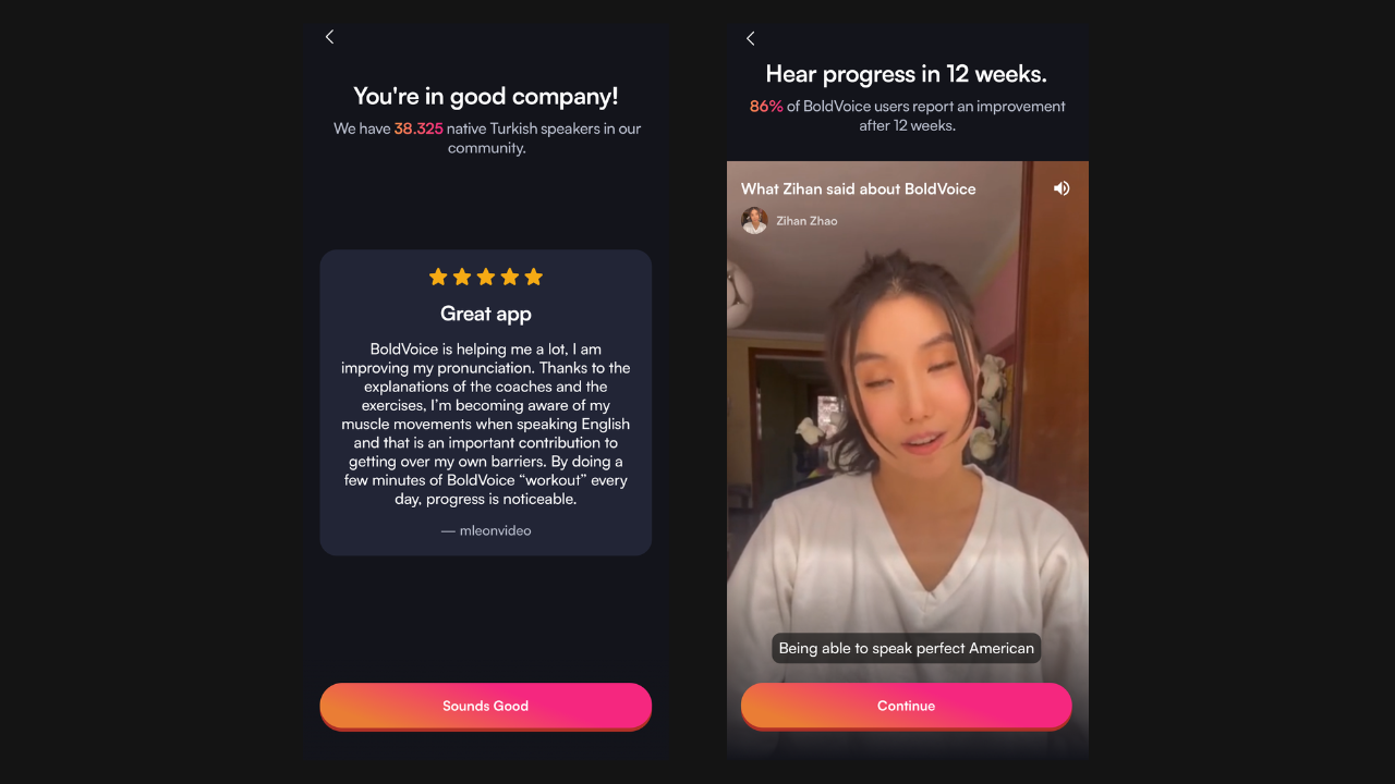Expectation-setting is one of the strongest conversion levers in mobile apps. Bold Voice nails it.