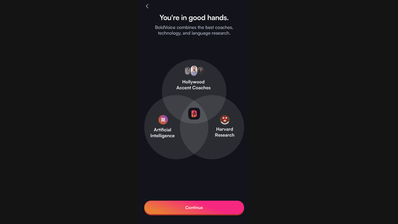 Bold Voice runs a long onboarding flow, but the user never feels trapped or slowed down.