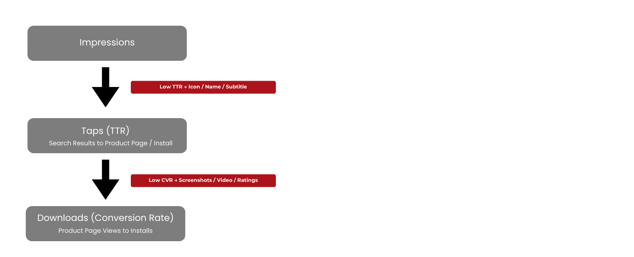 - Product Page Views → Downloads (Conversion Rate): Once they land on your product page, are they installing?