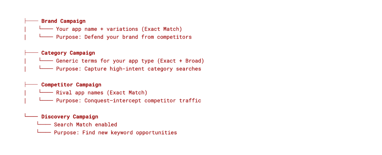 - [ ] Restructure ASA campaigns into four-campaign framework
